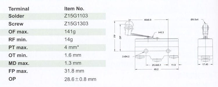 MJ2-1305 nyomócsapos mikrokapcsoló